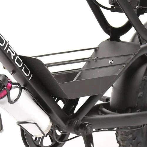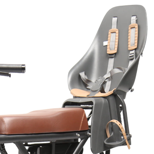 Front rack, basket & child seat for convenience, helmet for safety, dual battery & console storage for ultimate utility.