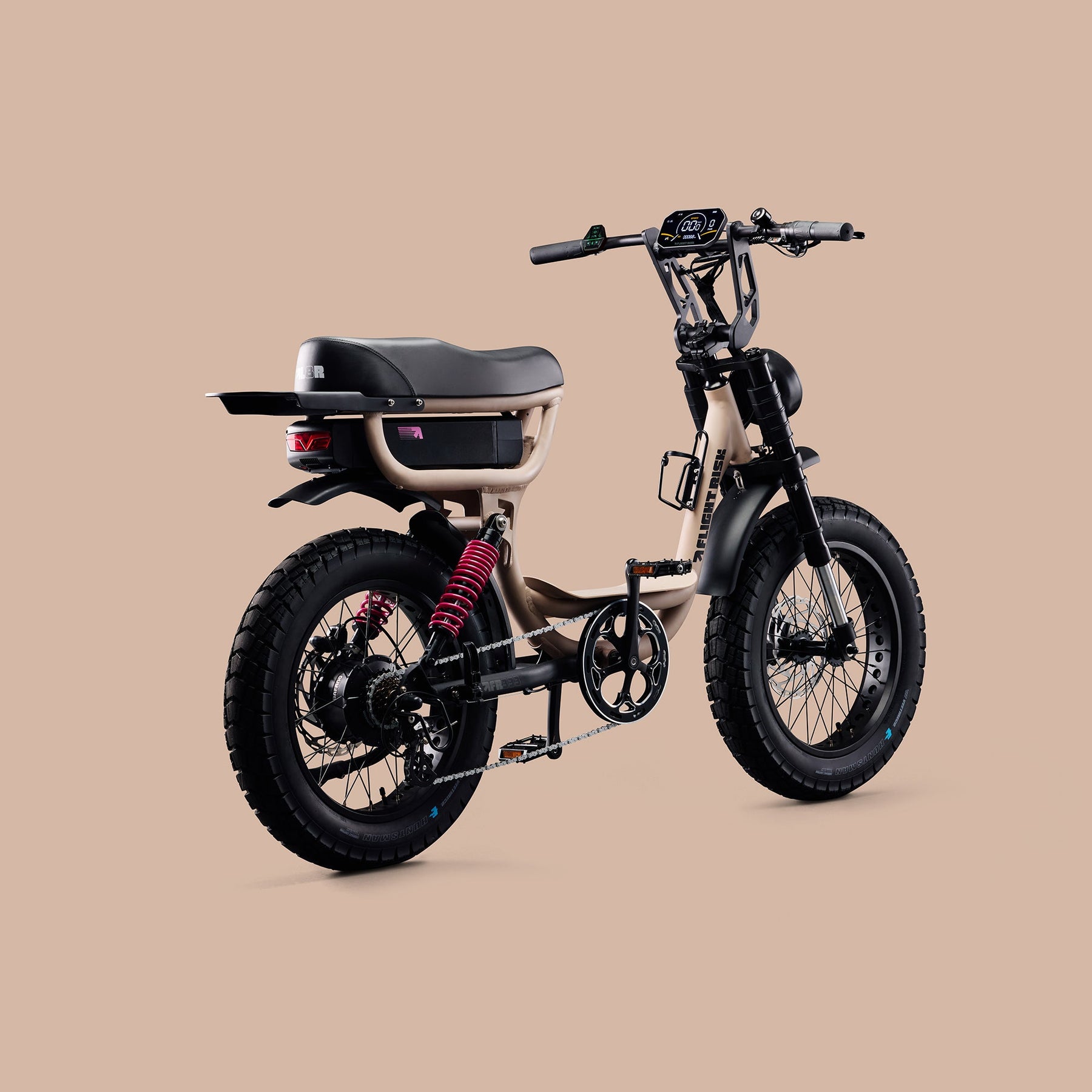 Pink e-bike with rear suspension, blinkers and GPS tracking - FR333 Pink from Flight Risk